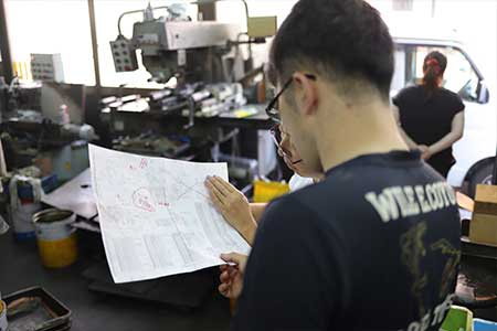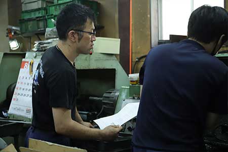 図面を基に、実際の製造作業に入ります。 自社だけに限らず、町工場の連携でスピーディかつしっかりとした品質の製造が可能です。