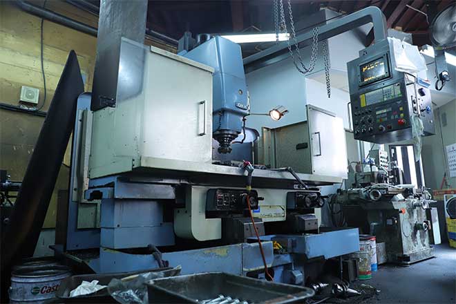 主軸40番タイプの小回りがきくNCフライスです。 OKK同様にボルト、ナットや材料の寸法揃えのフライス加工が可能です。 剛性は少し劣るものの同等の加工が可能です。